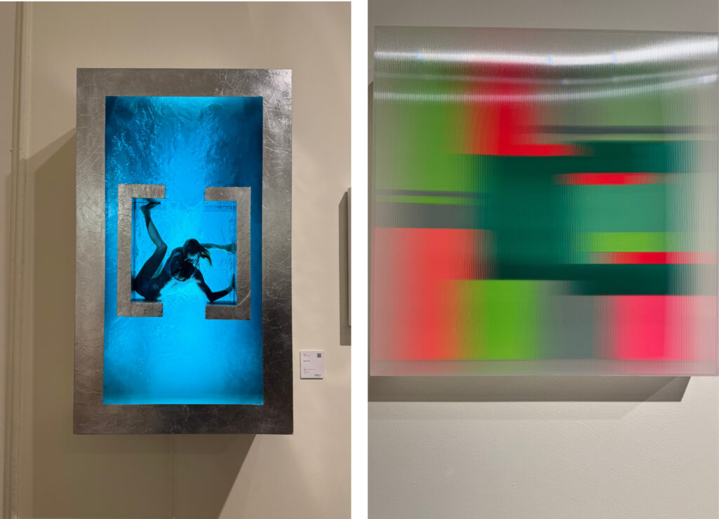 Marck is a Swiss artist whose work was showcased by Bluerider Art. I had quite a strong reaction to these pieces – completely mesmerising and slightly unsettling as well, with women trapped in a tiny sardine tin and in a box inside a miniature swimming pool. I wasn’t surprised to learn that German artist Christiane Grimm is a trained architect. Her fascination with colour and its kinetic effects are powerfully explored in this piece called Wallflower I. The works appear to move as you move past them, creating compelling and hypnotic vistas.