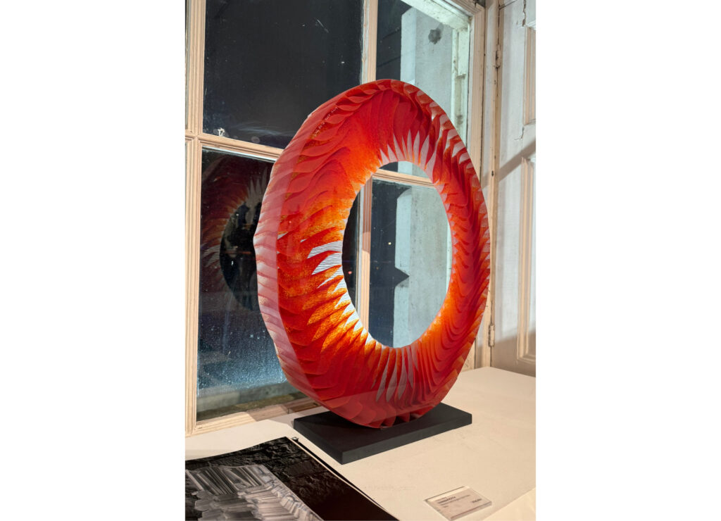 The glass sculptures in London Glassblowing’s room were extraordinary. Three pieces in particular made me stop, stare, and move around them again and again, each angle revealing something new – shifts in light, subtle variations in form, and the way the material seemed to hold and transform its surroundings.